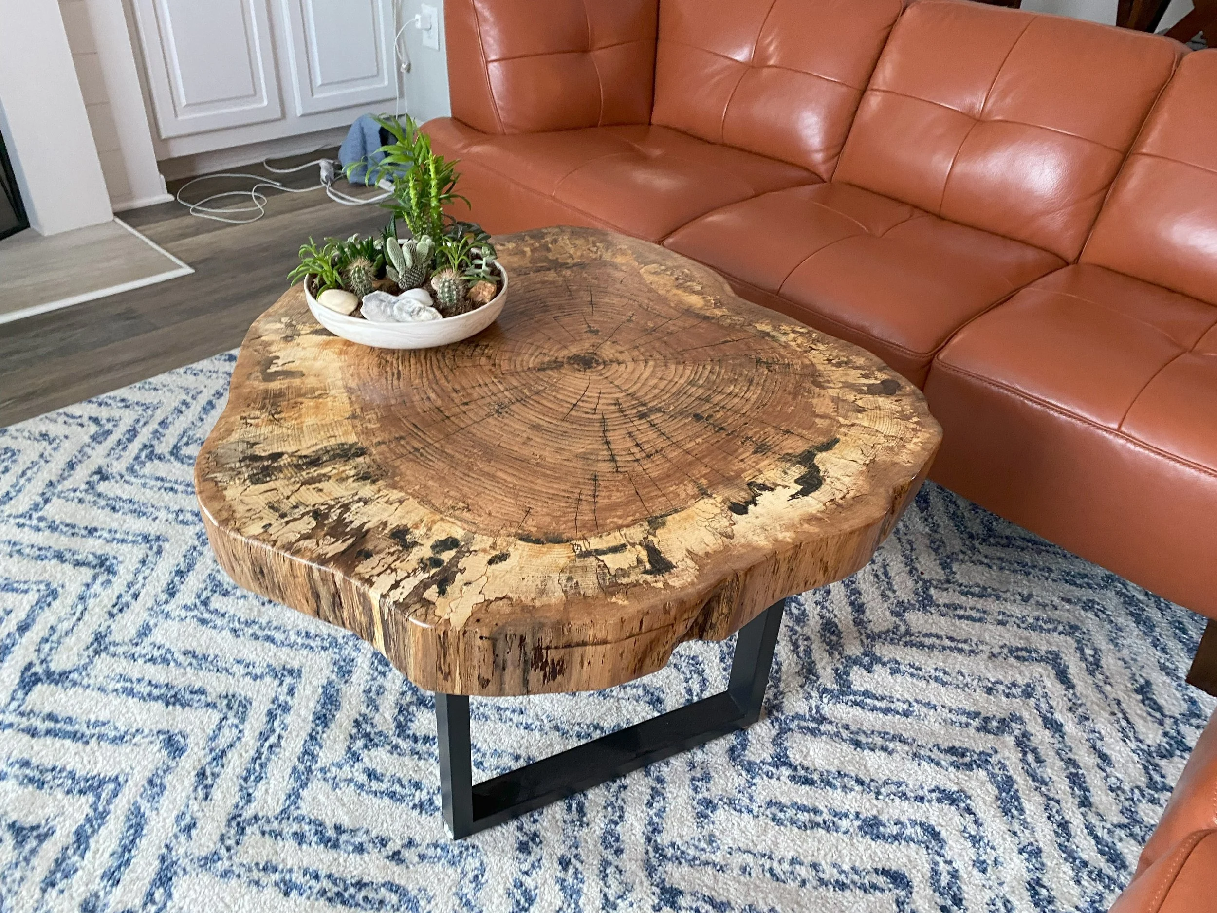 live edge, metal and wood, modern, handmade, round, epoxy resin, waterfall, and more!